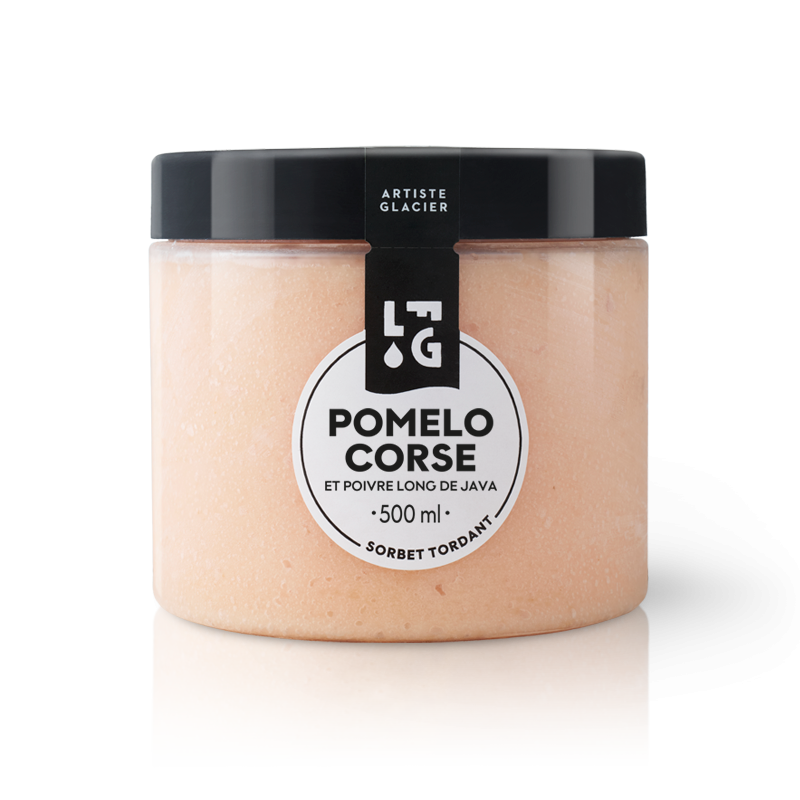 Un sorbet plein fruit qui envoie du soleil et du peps. On prend le jus du Pomelo Corse, vibrant. On l’associe aux notes boisées et fruitées du poivre long de Java. Résultat : un sorbet d'une fraîcheur éclatante, une pointe d’épice, un twist qui réveille. Authentique, franc et intensément fruité.