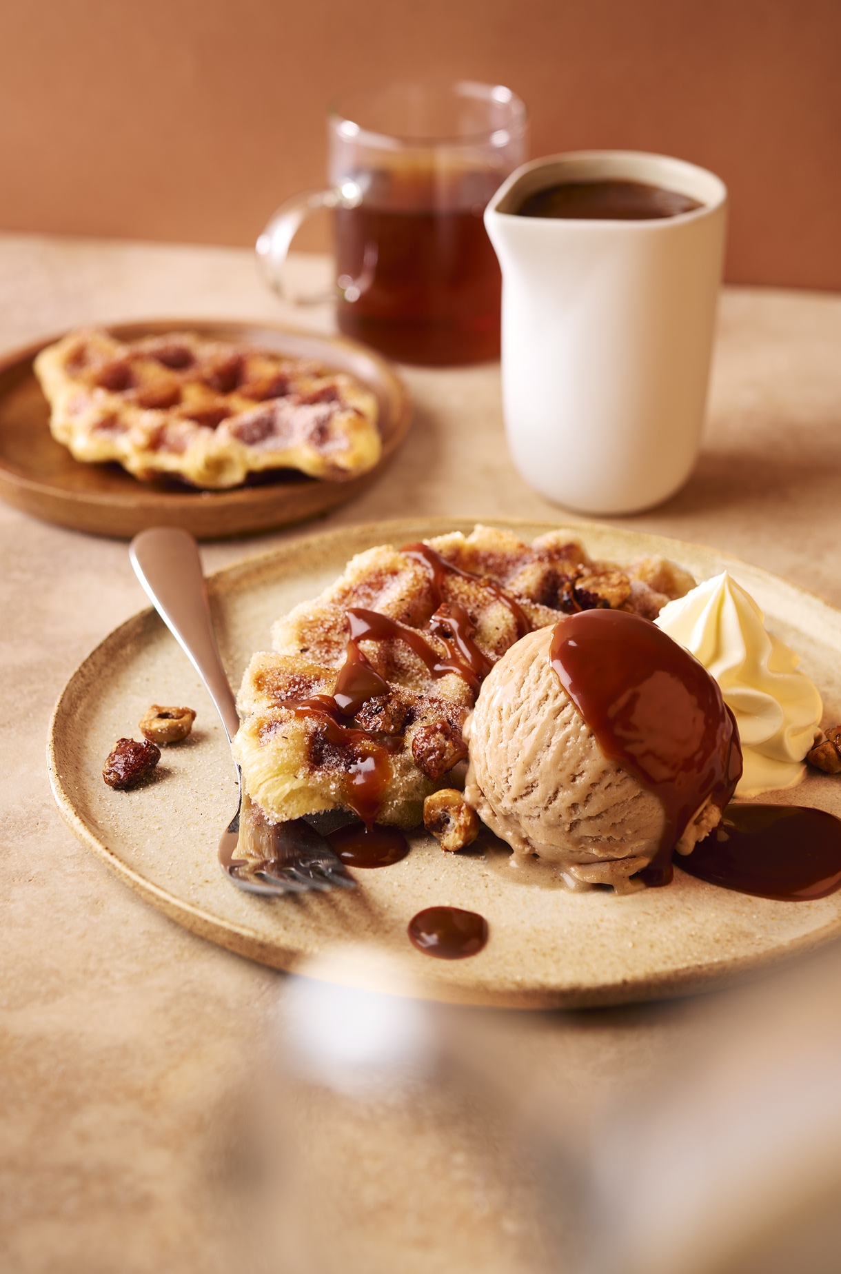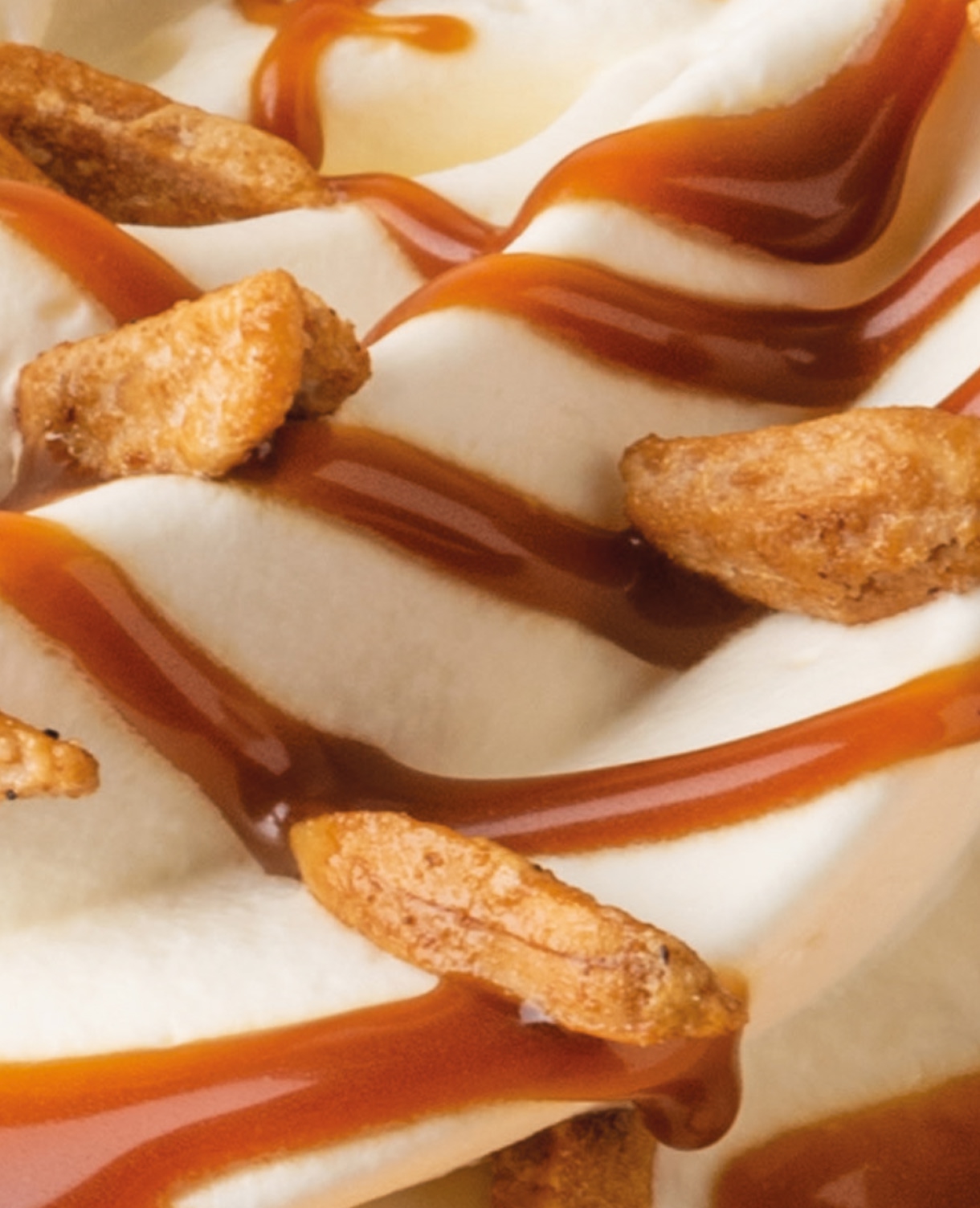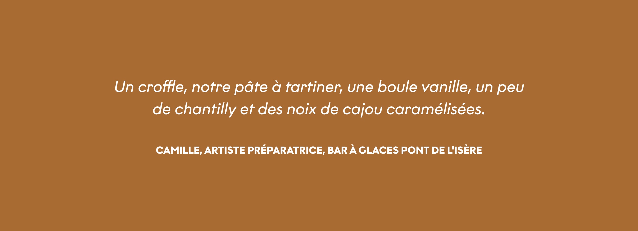 Créez votre douceur digne d'une oeuvre d'art à votre sauce. Plutôt croffle avec une boule Noisette, sauce caramel et noix de cajou caramélisées ou gaufre chantilly sauce caramel et éclats de cornets accompagnés de noix de pécan caramélisées.