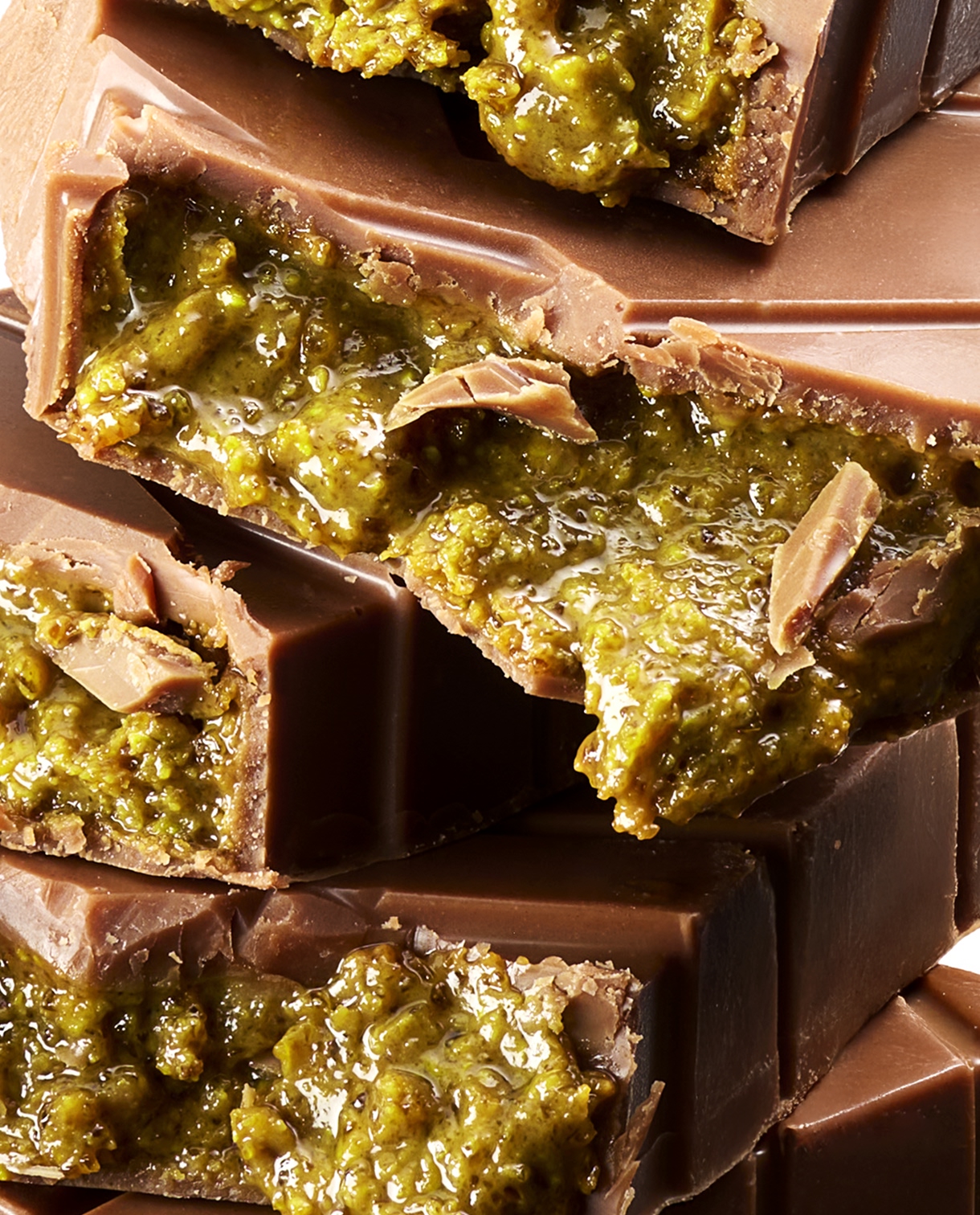 À La Fabrique Givrée, la pistache sort de sa coquille et exprime tous ses arômes dans la nouvelle barre chocolatée au bon cœur fondant pistache d’Iran et amande. Et s'il vous faut une raison de plus pour fondre pour la barre pistache, son délicieux enrobage au chocolat au lait Jivara® saura vous faire craquer.
