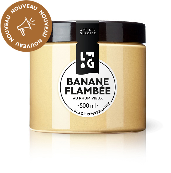 Glace au lait et crème des Monts d’Ardèche à la banane caramélisée dans un caramel maison et flambée au rhum vieux V.O martiniquais.