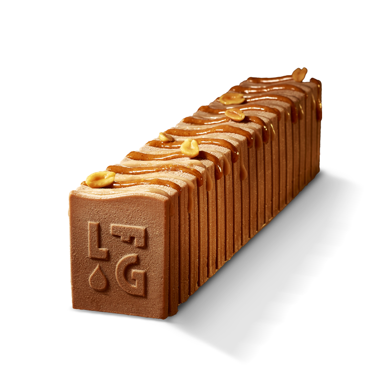 Une barre de gourmandise à partager sans modération ! Imaginé et réalisé dans notre atelier artisanal, ce dessert glacé est complétement givré : crème glacée au cookie et vanille de Madagascar, crème glacée à la cacahuète grillée, cookie moelleux, cœur crémeux caramel et cacahuète grillée. Impossible d'y résister.